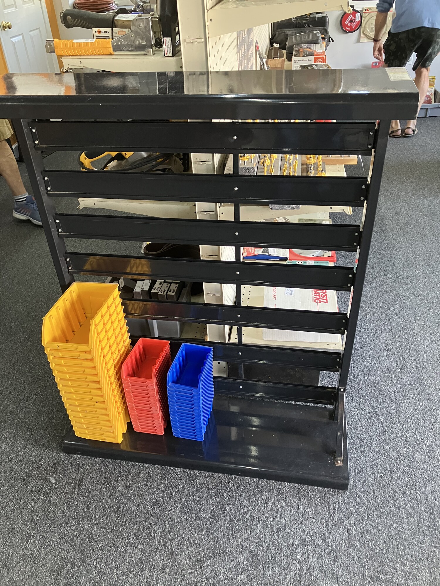 This space-saving storage rack holds 47 bins for easy storage of parts, supplies, and fasteners. The storage bins are constructed of high-impact polypropylene and the rack is powder-coated steel.