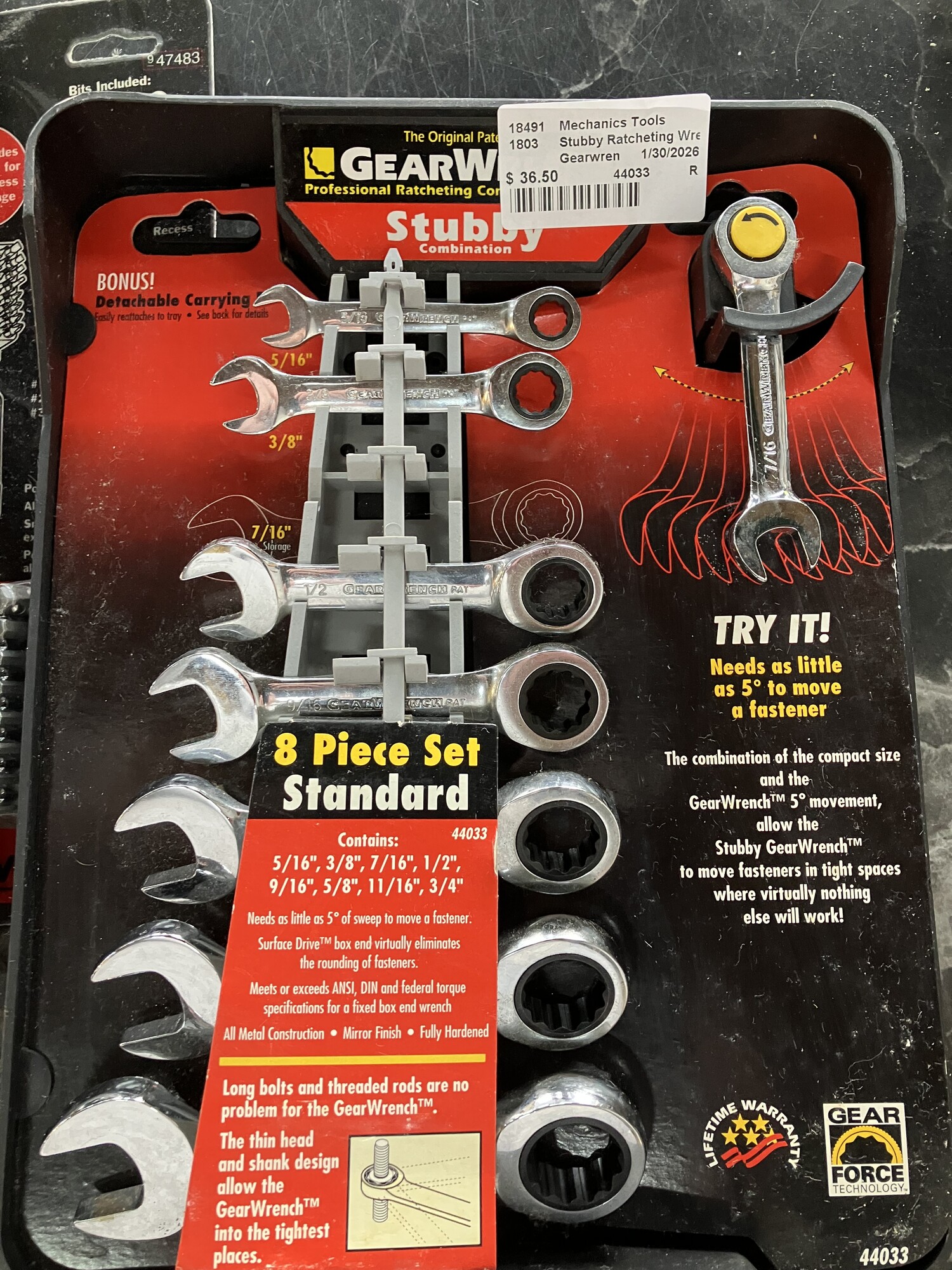 Stubby Ratcheting Wrench Set, Gearwrench 44033